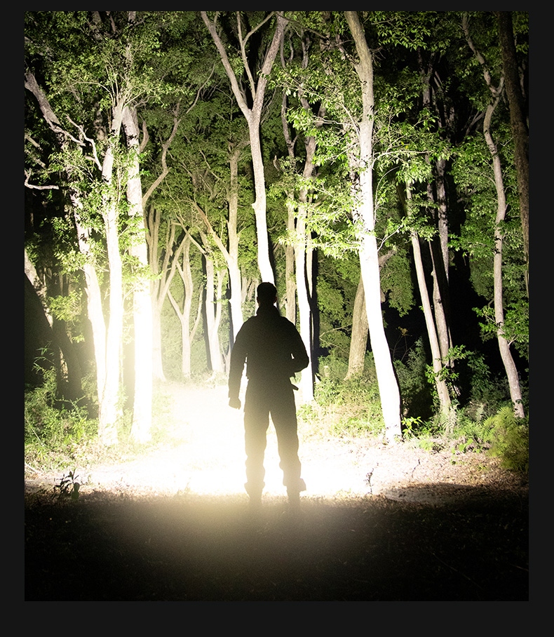 聚光主燈 亮度隨心 輕按后端開關按鈕,主燈強光點亮,續按依次切換主燈工作光-爆閃光。主燈開啟狀態下長按5秒,可實現光源色溫轉換。主燈關閉狀態下長按5秒,可開啟燈具最亮照明模式。 爆亮強光 亮如白晝 1500LM大功率高亮光源,點亮頃刻如白晝