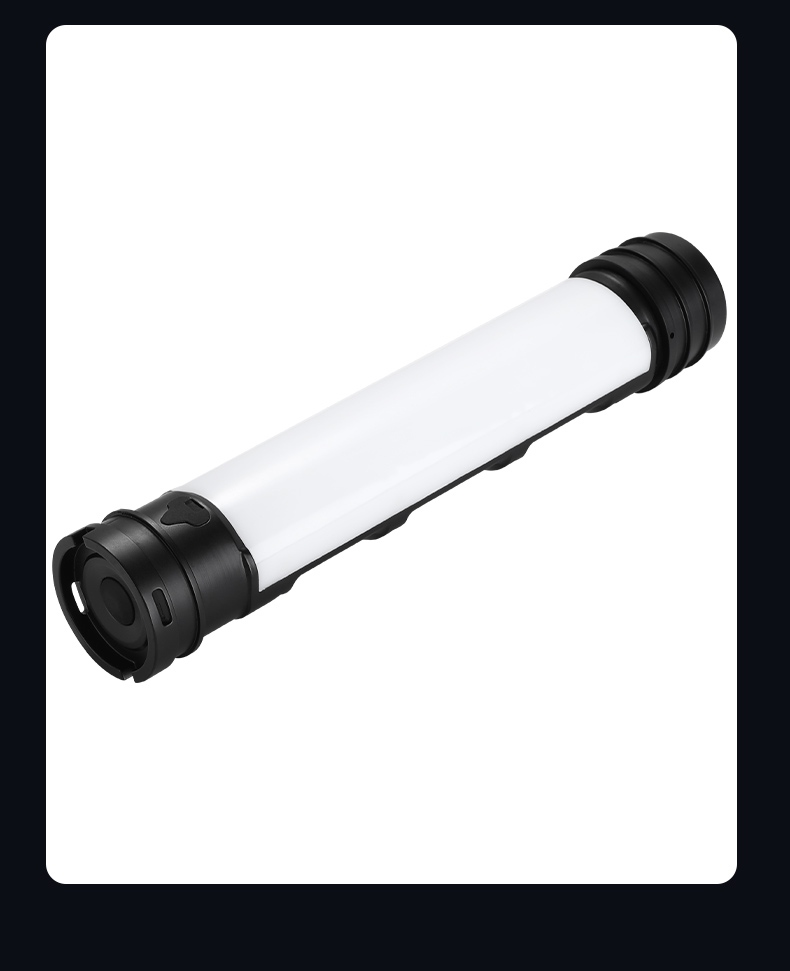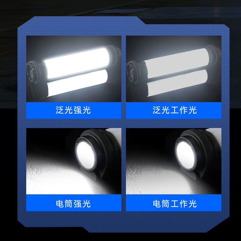 輕按尾部開關按鈕,泛光強光點亮,續按依次切換泛光工作光-電筒強光-電筒工作光-關閉。