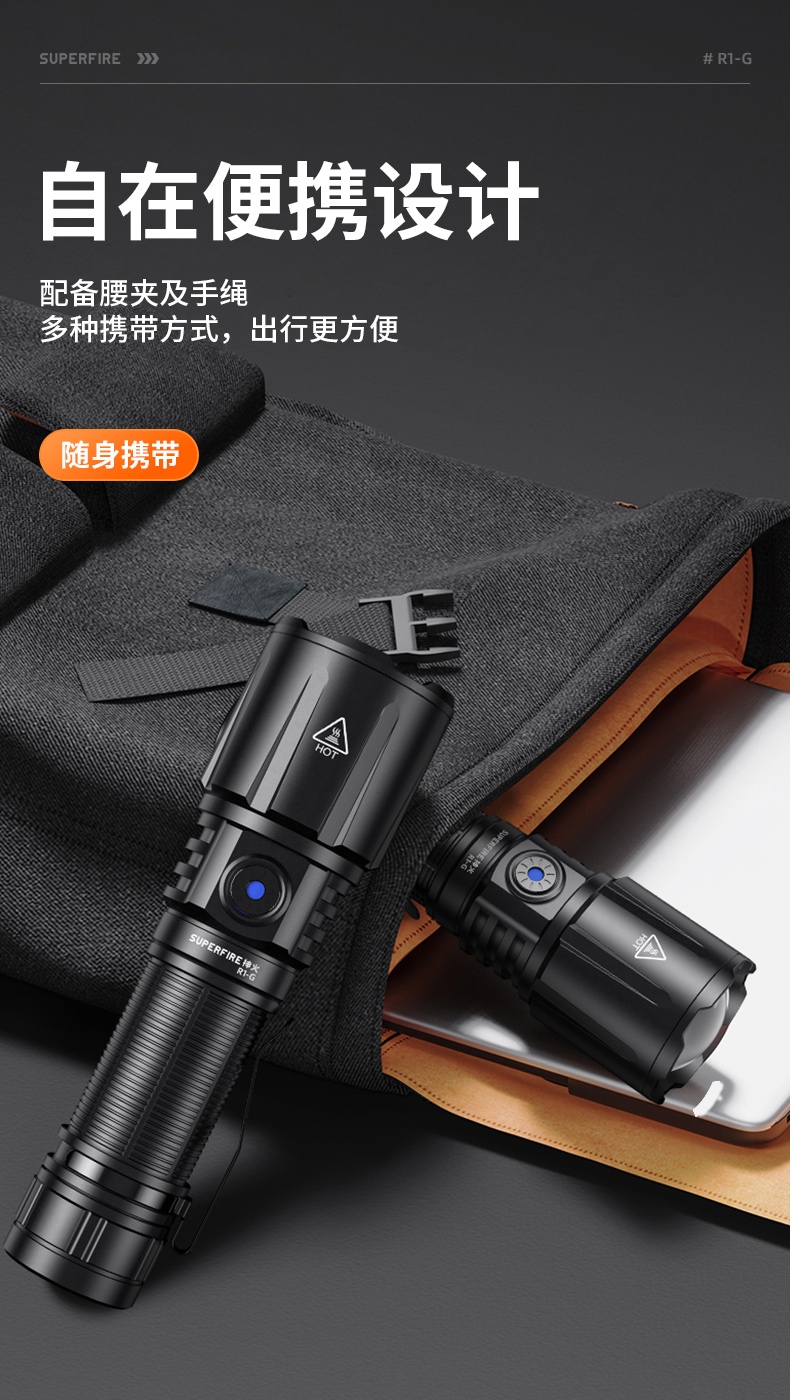 1、千米遠射,射程更遠,光斑更聚焦。 2、進口燈珠,亮度高,照明效果更好。 3、前后雙按鍵,光源一鍵點亮,高亮瞬間開啟。