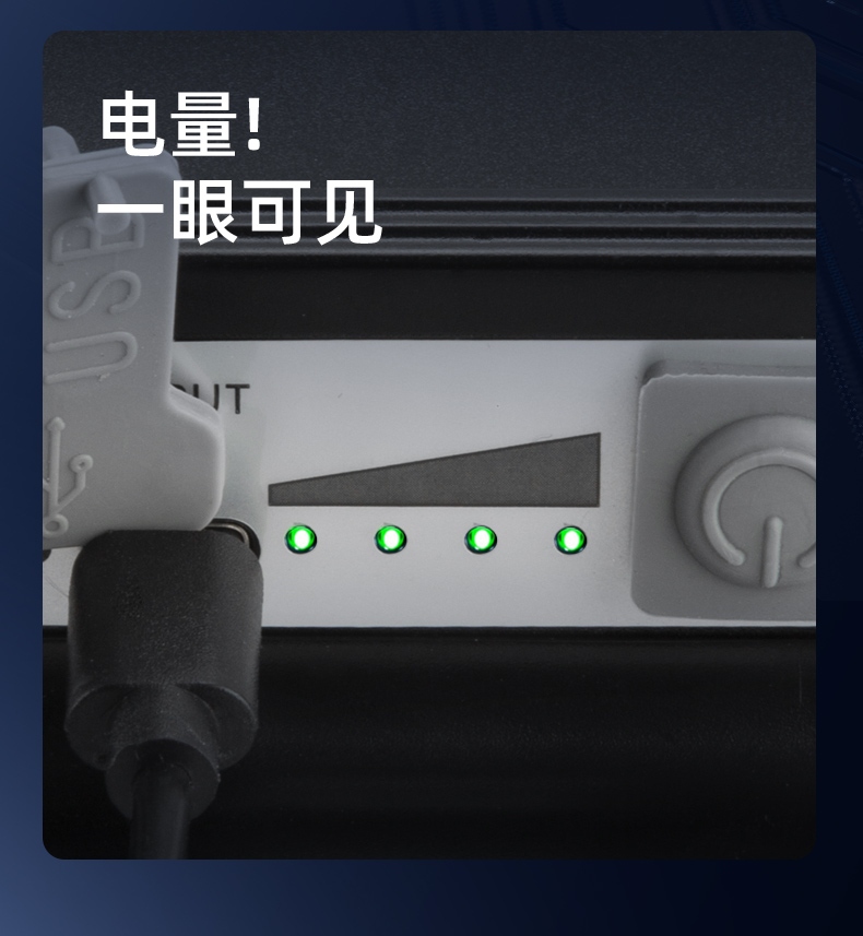 1.單擊左邊開關開啟感應功能,同時開啟強光檔,續按關閉感應功能(關閉感應功能,光源不會關閉),當感應功能開啟時,單擊右邊開關可正常調節檔位。 2.多樣化充電,使用方便:設有Type-c充電口,可使用充電器、充電寶、電腦等設備為燈具充電。 3.電量顯示:實時