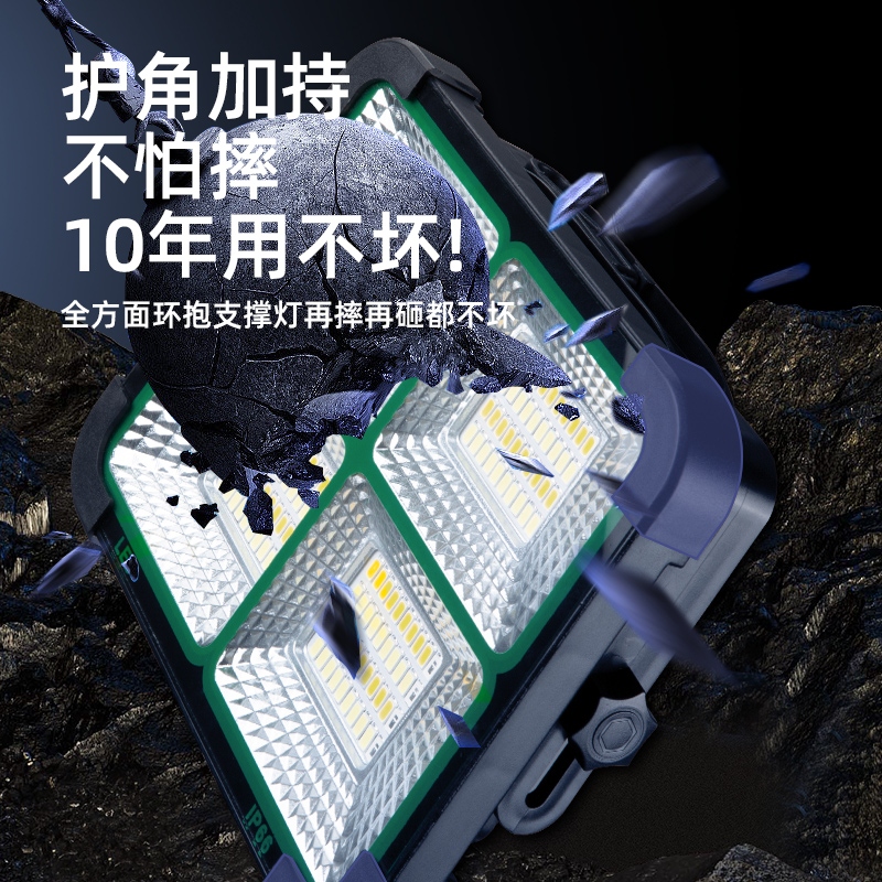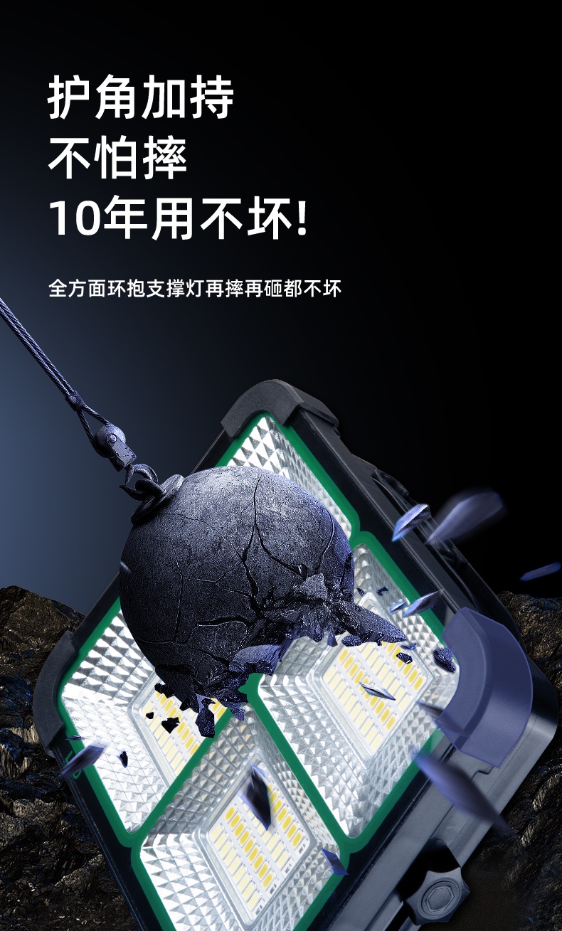 IP54級戶外防水防塵,無懼惡劣天氣,滿足戶外使用需求 護角加持不怕摔10年用不壞! 全方面環抱支撐燈再摔再砸都不壞