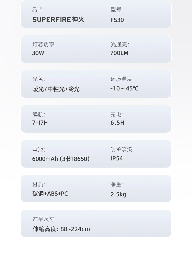1、多檔調光,可滿足不同使用場景下的照明需求; 2、含提手,握感更舒適。攜帶更簡單; 3、新型高亮遠射燈珠,60W大功率,亮度高,照明效果好。